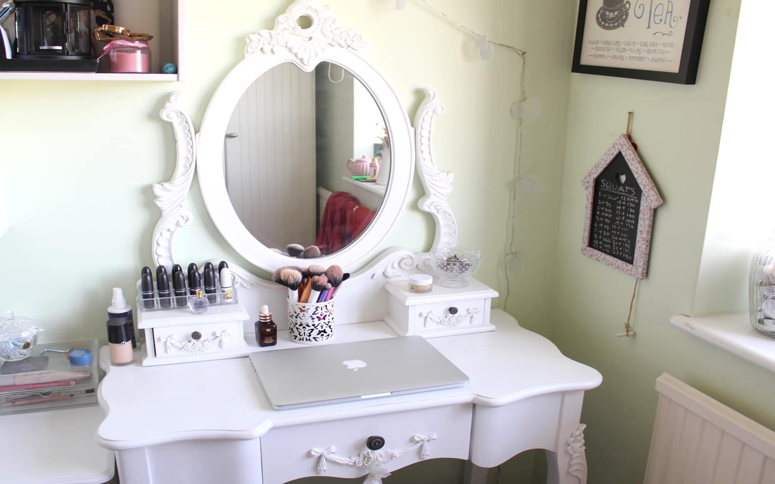 - Our white dressing table is now available with lighting additions so that you can be dolled up easily.